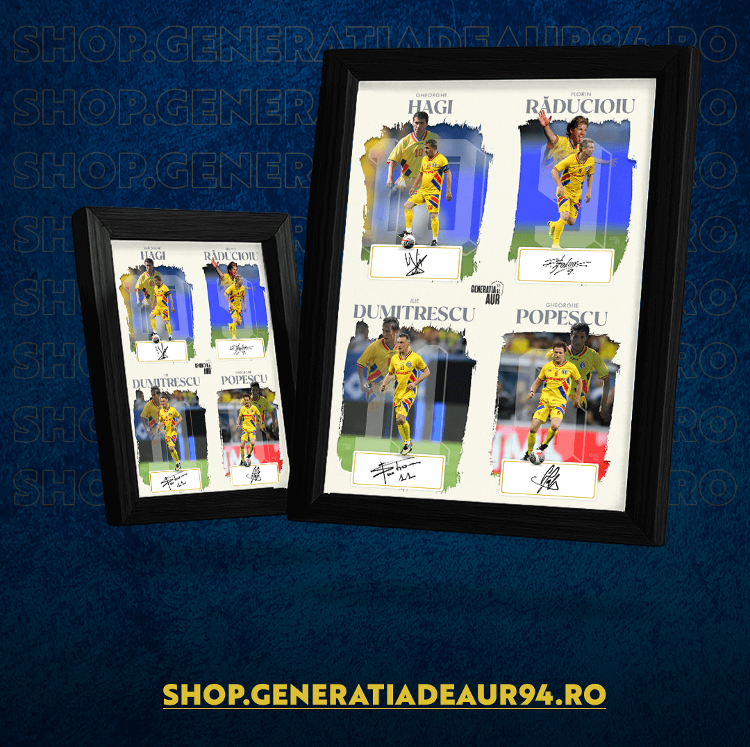 2. Ramă cu semnăturile originale ale lui Hagi, Popescu, Răducioiu și Dumitrescu
